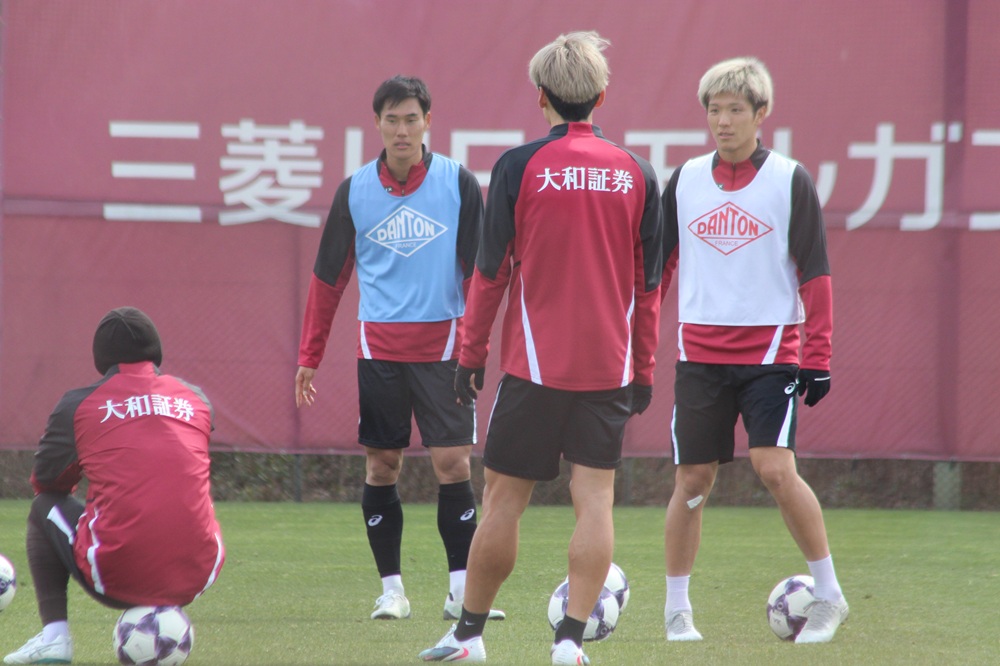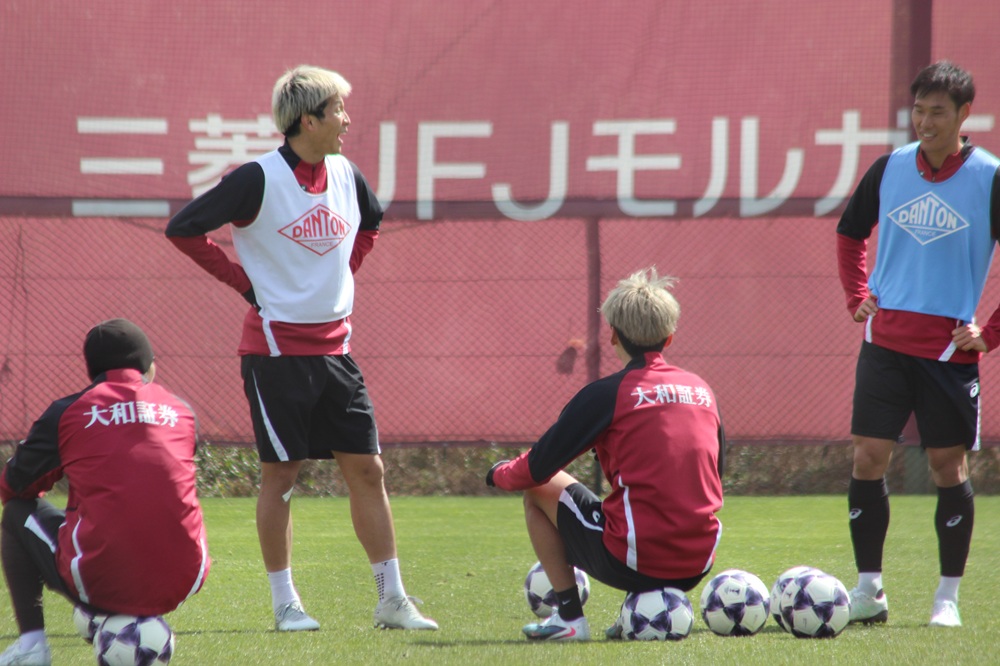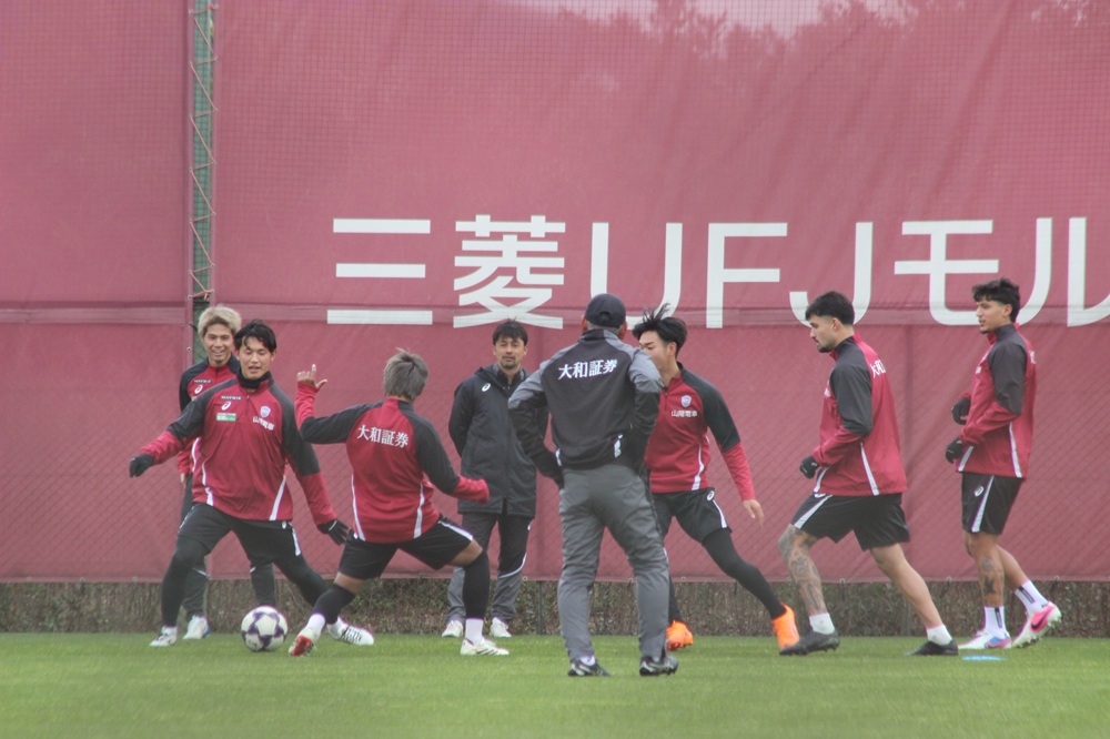 練習ではパス回しやミニゲームなどが行われ、