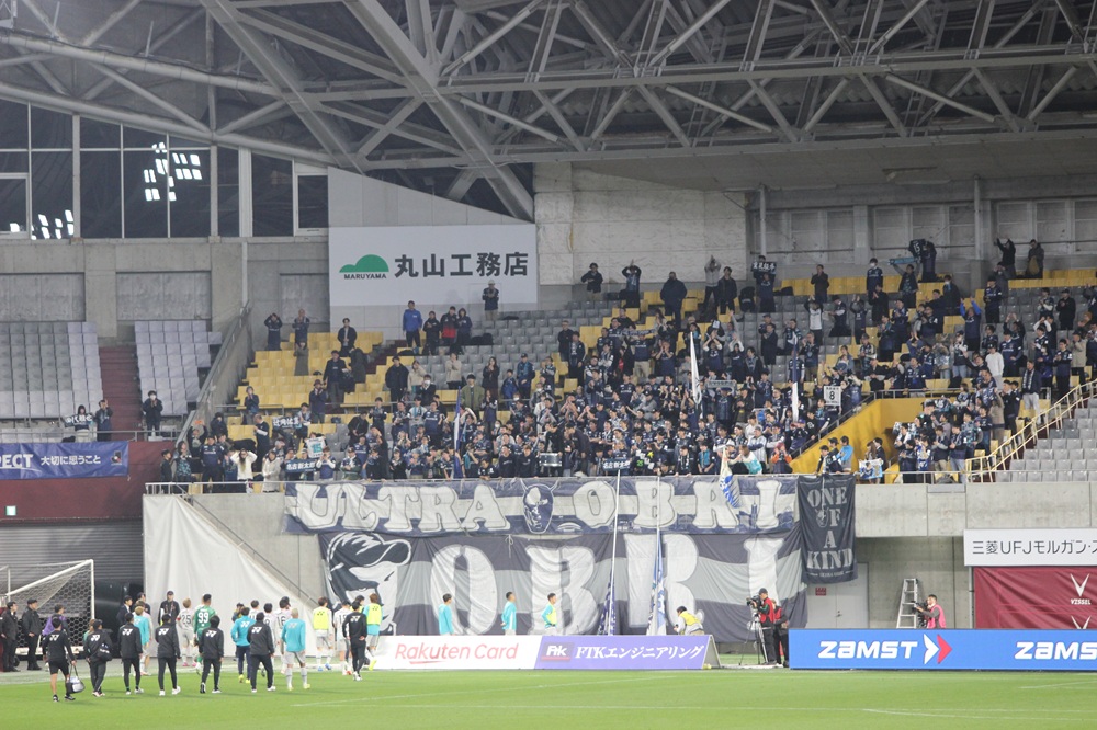 ビジターシート、アビスパ福岡サポーターの様子