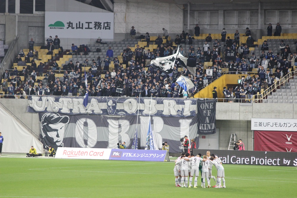 ボクは試合後、オビ選手がゴール裏に挨拶しにきた場面です。