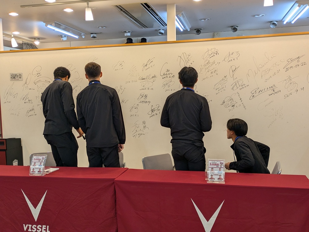 サイン会と撮影会が終わると、選手たちは店内の壁にもそれぞれサインを書き、